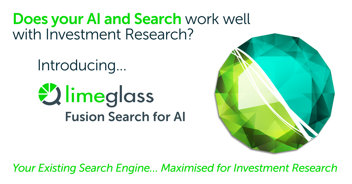 All GenAI bots need an ‘information retriever’ to provide the LLM with the relevant information and context to accurately answer the question. Limeglass Fusion Search for AI is a specially designed information retriever that is optimised for the challenges of investment research.